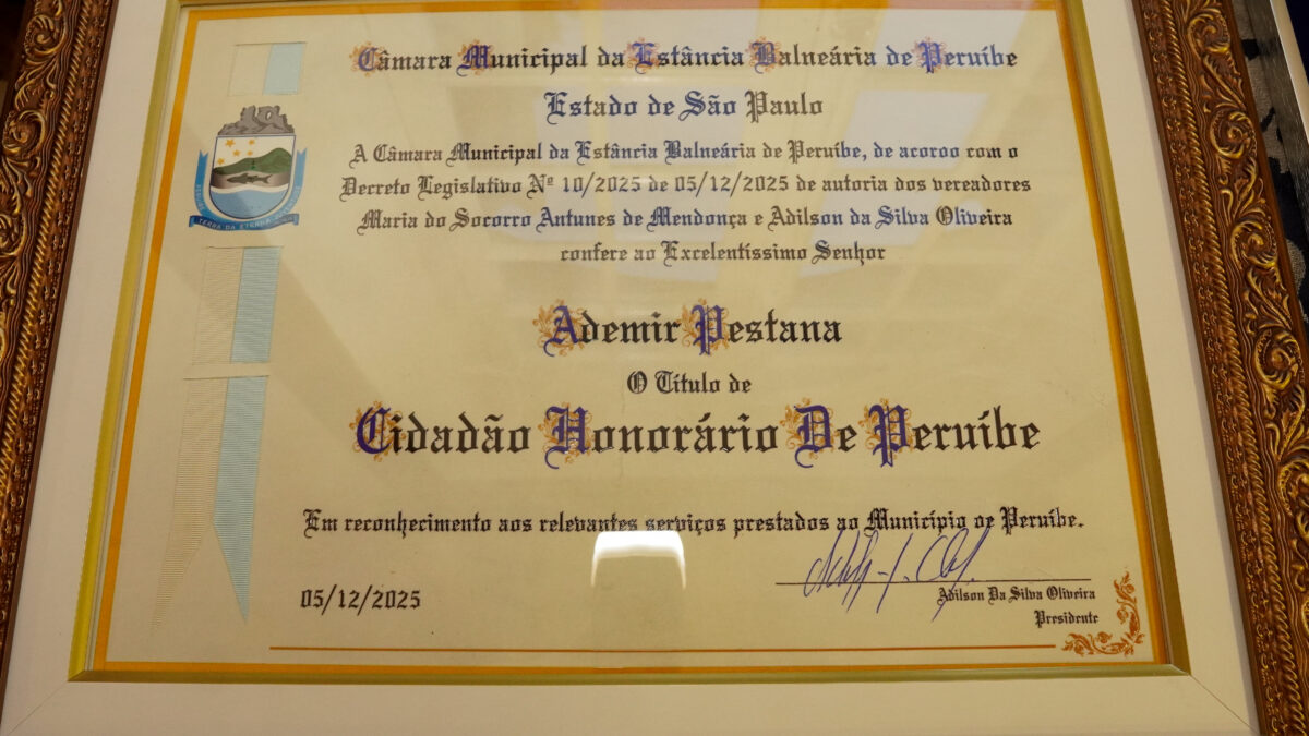 SINTO-ME IMENSAMENTE HONRADO E FELIZ POR ESTAR NESSE MOMENTO, RECEBENDO O TÍTULO DE CIDADÃO HONORÁRIO DE PERUÍBE, POR ISSO, TODA E QUALQUER PALAVRA QUE EU VENHA A PROFERIR NESTA NOITE SERÁ DE GRATIDÃO. MAS ANTES DE QUALQUER OUTRA MANIFESTAÇÃO, REGISTRO MEU AGRADECIMENTO ESPECIAL À CÂMARA MUNICIPAL DE PERUÍBE E A SEUS VEREADORES QUE ADERIRAM À PROPOSTA DA VEREADORA SOCORRO MENDONÇA VOTANDO EM MEU NOME PARA TÃO ALTA HONRARIA. À VEREADORA, CONSIGNO EM ESPECIAL, MINHA ETERNA GRATIDÃO.